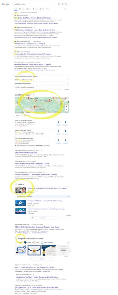 A well set-up SEO strategy is targeting more than just organic results. It aims at optimizing the whole SERP (search engine result page):