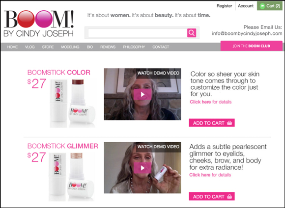 We created BoomByCindyJoseph.com to sell our products and increase awareness of the Pro-Age Revolution, a movement focused on shifting the anti-age perspective of our society to a pro-age perspective. We have gotten an incredible response from the pro-age community and women of all ages, especially those who identify as “Baby Boomers.”